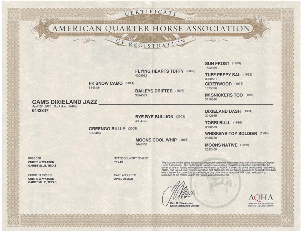 | Pedigree Name | Cams Dixieland Jazz | Barn Name | Dixie |