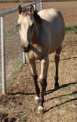 Hank is as smooth as glass — he has a nice long stride and can really stretch out. He has a deep gold color giving him a classic buckskin look. Hank was started by Casper May and ridden around here for over a hear. Hank is easy to deal with – he doesn’t mind being alone.